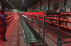 整件部分:設(shè)計(jì)三個(gè)大區(qū)共九人作業(yè),采用電子標(biāo)簽揀貨系統(tǒng)輔助揀貨,動線采用S型揀貨動線設(shè)計(jì)。電子標(biāo)簽在揀貨時(shí)可以滿足多人同時(shí)進(jìn)入一個(gè)區(qū)域進(jìn)行揀貨,解決了同一區(qū)域作業(yè)等待問題并大幅度提高了揀貨作業(yè)的
